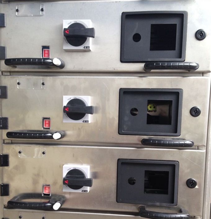柜體采用組合裝配式結構,骨架采用KB型材或不銹鋼型材組裝而成。水平母線放置柜頂,柜頂采用敞開式結構,頂蓋可開啟,柜體裝有后門,出線方式采用后出線,安裝、維修更便捷。抽屜采用開門操作方式。開門操作時抽屜采用XJG3(旋轉三工位)推進機構和BPT(撥把三工位)及DJG1-1G(旋轉三工位)推進機構。一次插件采用新型無活門方式,可靠性更高。單元回路可實現(xiàn)額定電流630A及以下方案,其中1/2單元抽屜電流可達到125A,1/4.63A。柜體防護等級IP4X。