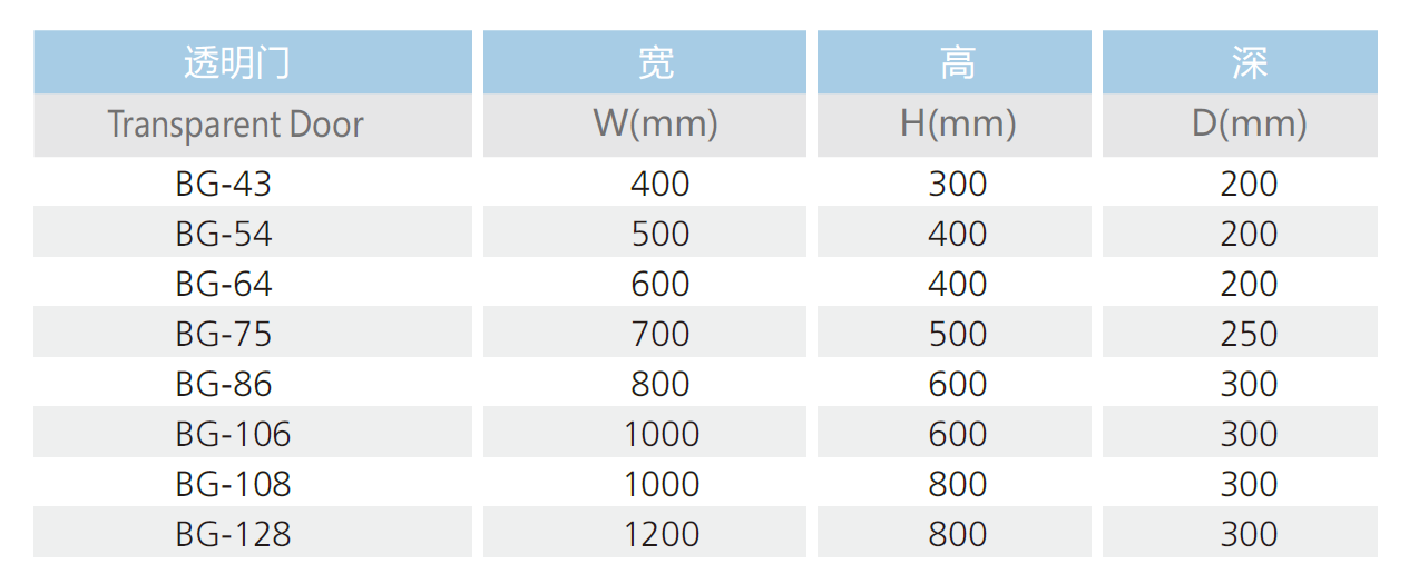 ● 標準配置門板、箱體、密封條、接地套件、安裝板、門鎖